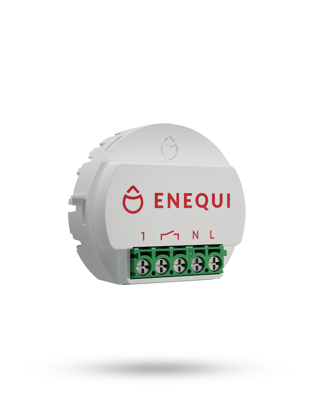 Smidig energimodul med reläfunktion, utformad för montering i en väggdosa bakom strömbrytaren eller på en DIN-skena i elcentralen. Utrustad med en ingång för styrning av funktioner som på/av, astro-läge, schemaläggning, timer och gruppering. Ingången kan registrera upp till fem klick för att aktivera olika program.