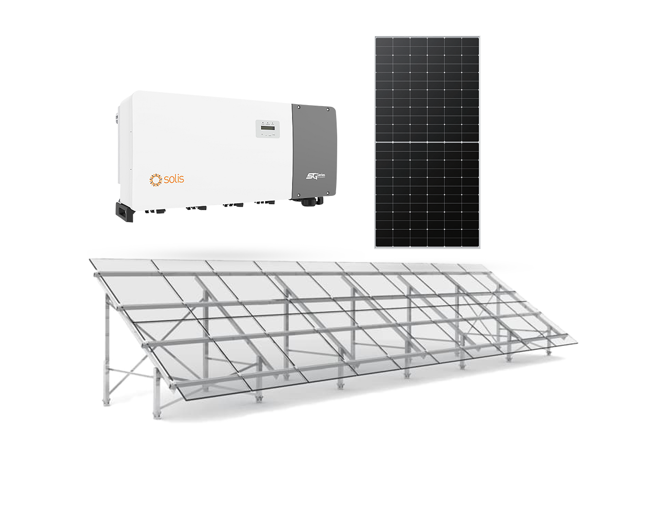 Komplett 100kW markmonterad solcellsanläggning med rotrör.