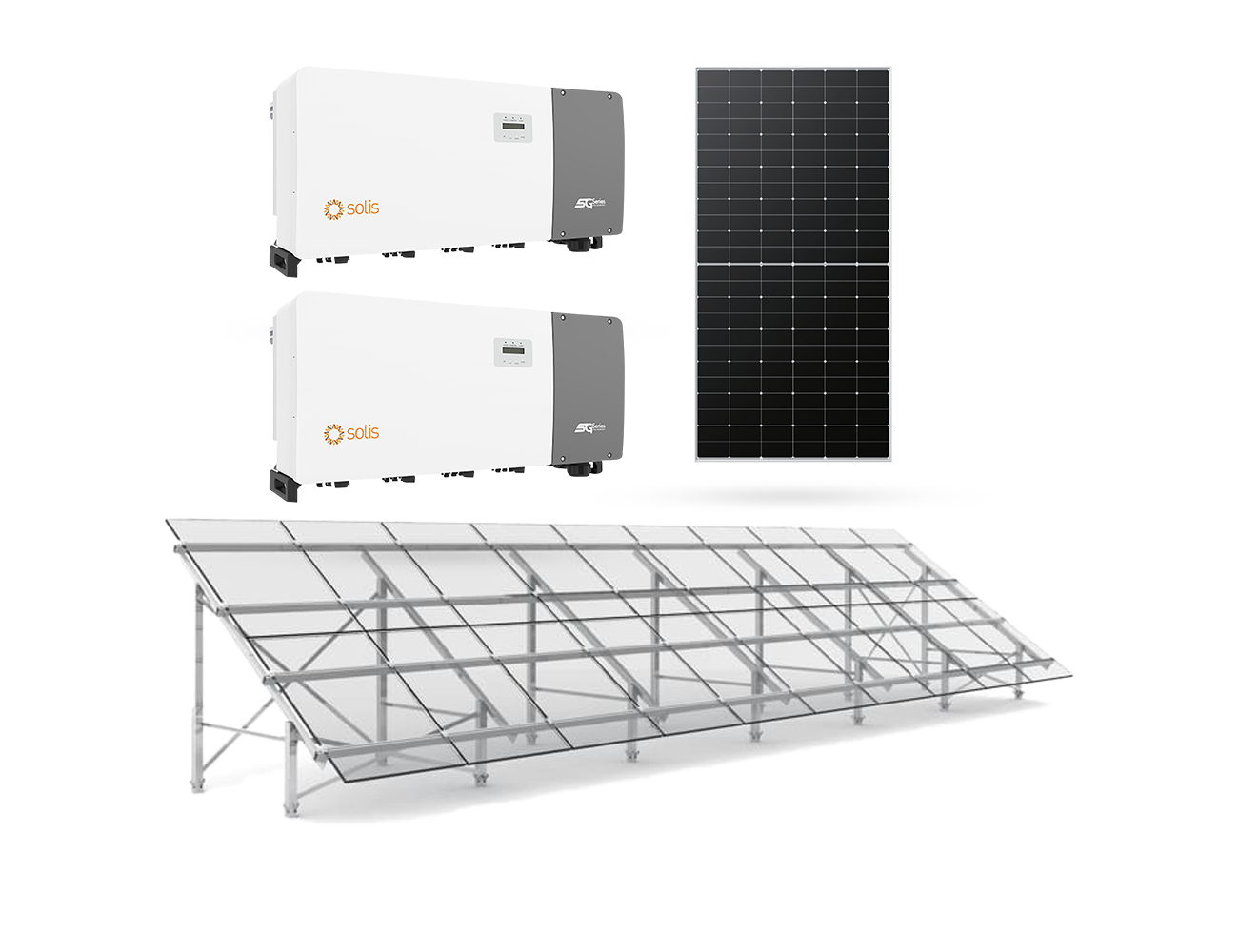 Komplett 200kW markmonterad solcellsanläggning med rotrör.