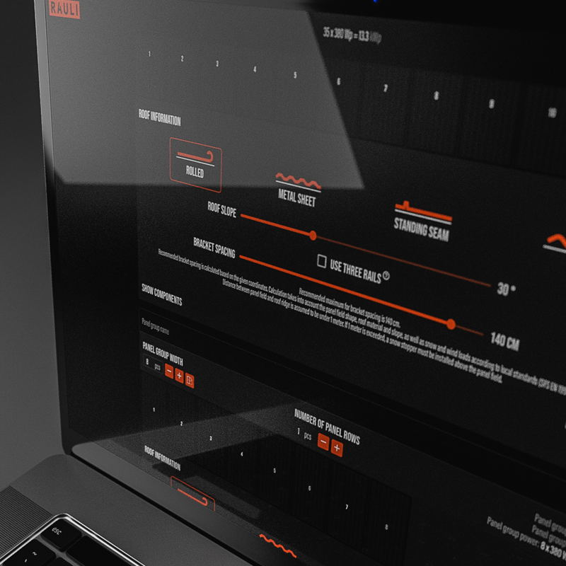 Med RAULI-APP kan du själv snabbt kontrollera installationsytans mått beräkningar för att säkerställa problemfri installation. Skriv ut överskådliga rapporter med information om antal komponenter och vilka krav som använts för beräkning av vind- och snöbelastning.